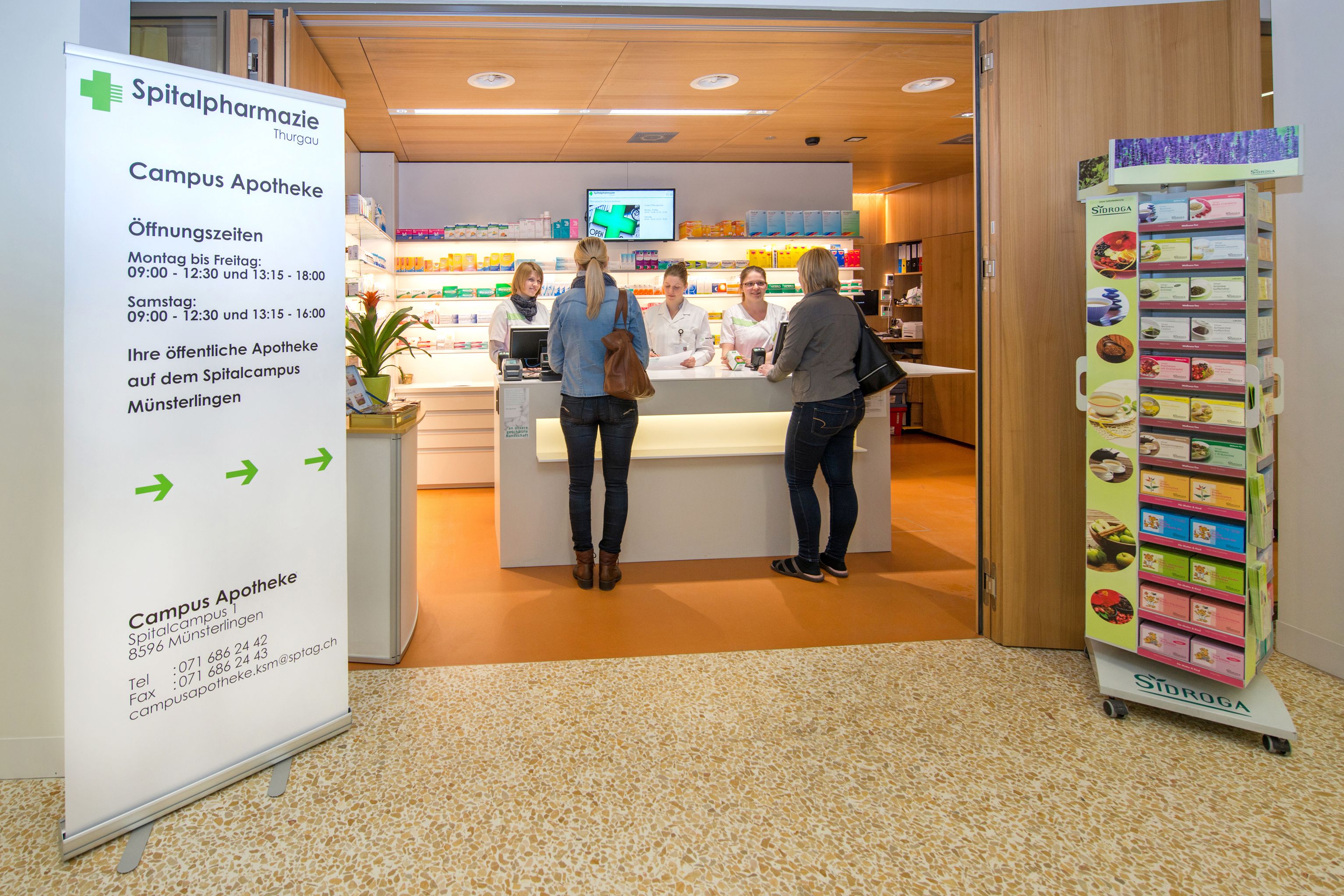 Die Campus Apotheke ist eine öffentliche Apotheke und befindet sich in der Eingangshalle des Kantonsspitals Münsterlingen.